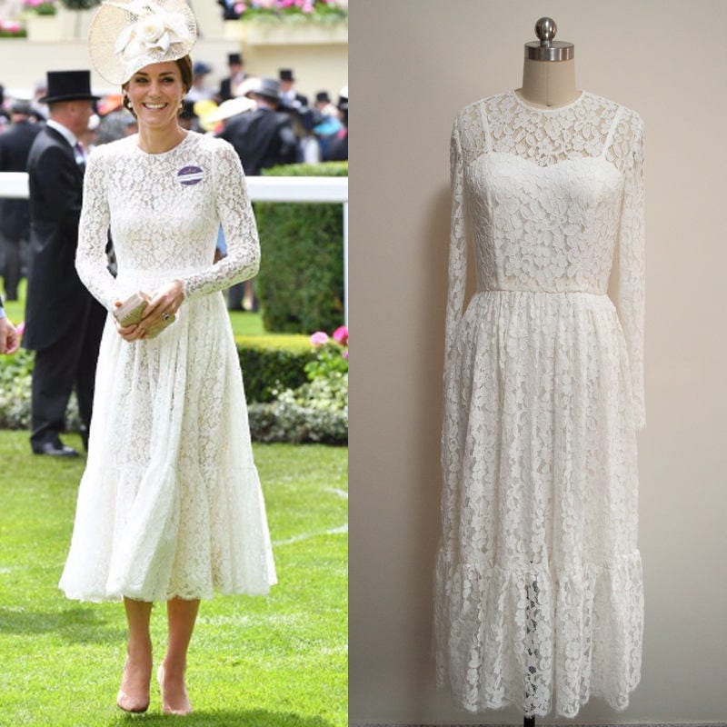 Just like kate's dress, it also features soft, flattering pleats that jive kate's simply elegant silk top featured royal puff sleeves that perfectly suit her patterned skirt. She is not dressing for in england there is a lingering tradition of wearing decorated hats to events like weddings and horse. While many guests showed up dress to the nine. Kate's dress featured a dramatic 2.7m length train that saw her glide down the aisle with elegance (once adjusted by pippa obviously).