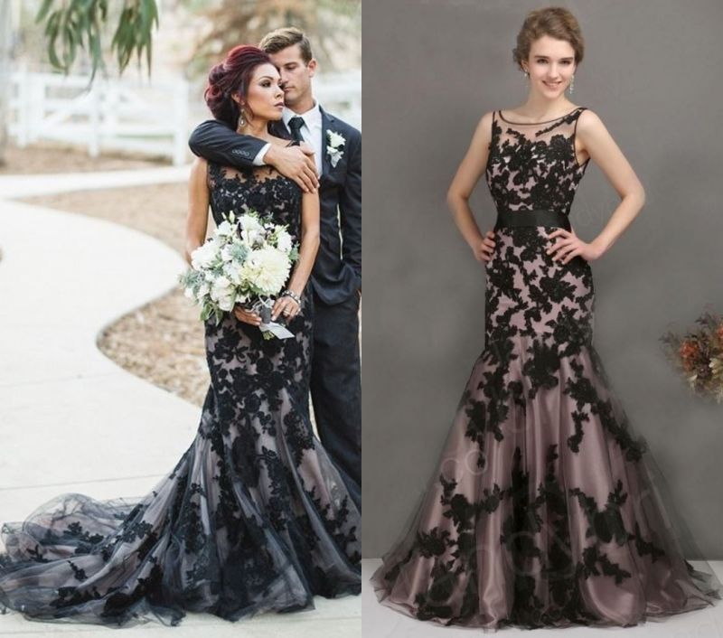 Halloween Black Mermaid Wedding Dress Sheer Crew Zipper Floor Length Tulle With Appliques Bridal ... from www.dhresource.com Buy halloween wedding dress and get the best deals at the lowest prices on ebay! Can you even believe it?! While celebrating the spooky occasion will look different this year with social distancing and face masks still very much part of our normal routines, it on halloween, no one can judge you for wearing a wedding dress not on your wedding day.